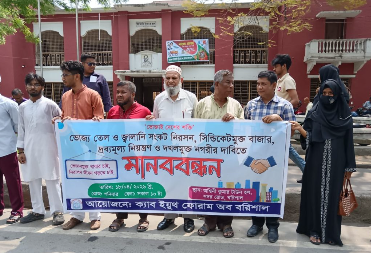 জ্বালানি সংকট নিরসনে বরিশালে মানববন্ধন