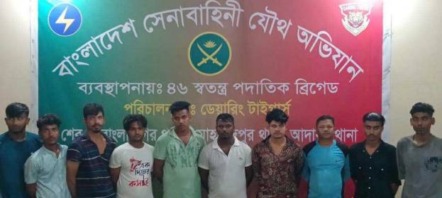 অভিযান চলাকালে সেনা সদস্যদের উপস্থিতি টের পেয়ে কয়েকজন গ্যাং সদস্য খালের মধ্যে লাফিয়ে পালিয়ে যায়। তবে ঘটনাস্থল থেকে ১০ জনকে আটক করা হয়। আটক ব্যক্তিরা হলো— স্বপন (৩০), আল আমিন (২২), শাকিল (২৫), মুনতাজ (২৫), মুক্তার (২৩), রিয়াজ (২১), ইমন (২০), লিমন (২০), আকতার (২০) এবং গ্রুপের অন্যতম নেতা নায়েম (২২)।