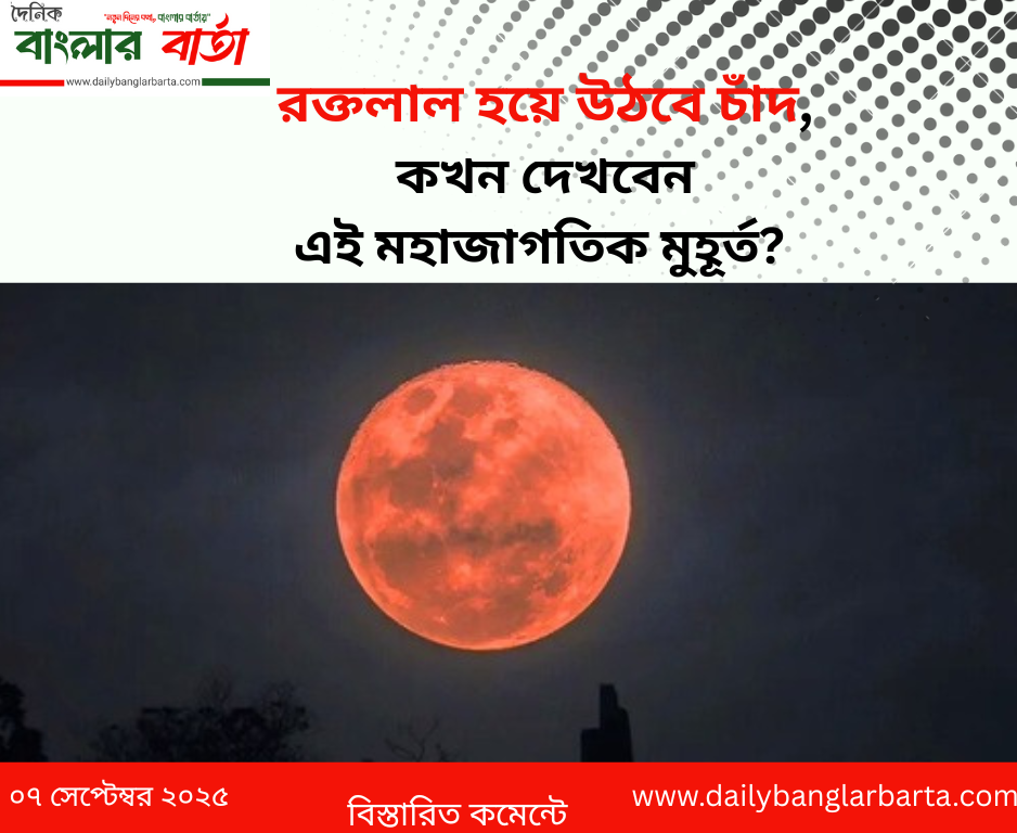 বছরের দ্বিতীয় পূর্ণগ্রাস চন্দ্রগ্রহণে ঘটতে চলেছে বিরল ঘটনা। পুরো বিশ্ব সাক্ষী হতে চলেছে প্রকৃতির বিস্ময়কর মুহূর্তের। আজ রোববার (৭ সেপ্টেম্বর) পূর্ণগ্রাস চন্দ্রগ্রহণের সময় রক্তলাল হয়ে উঠবে চাঁদ, যা দেখার সৌভাগ্য হবে বাংলাদেশিদেরও।