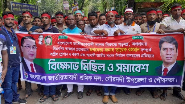 স্টাফ রিপোর্টার মোঃ মেহেদী হাসান। আগামী জাতীয় সংসদ নির্বাচন বানচালের ষড়যন্ত্র, বিএনপির বিরুদ্ধে অপপ্রচার এবং ভারপ্রাপ্ত চেয়ারম্যান তারেক রহমানকে লক্ষ্য করে অশ্লীল স্লোগান ও বক্তব্যের প্রতিবাদে বরিশালের গৌরনদীতে বিক্ষোভ মিছিল
