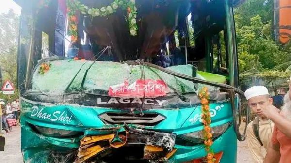বরিশালগামী ধানসিঁড়ি পরিবহনের সাঙ্গে র‍্যাবের মিনিবাস মুখোমুখি সংঘর্ষ হয়